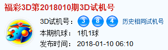 福彩3d第2018010期试机号:384