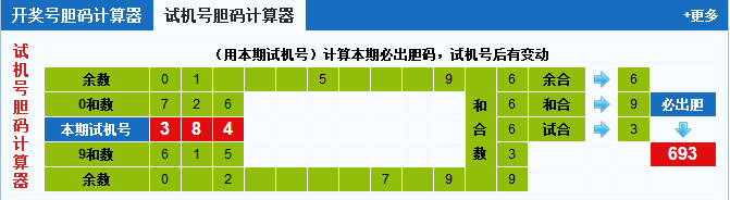 3d试机号胆码计算器:今晚必出胆码693