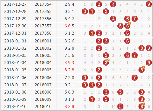 回顾:第18010期开奖结果为:858;奇偶形态:偶奇偶;大小形态:大大大;和值:21;跨度3。