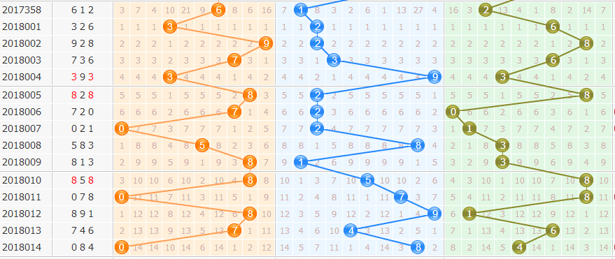③012路分析:为0路出1个,1路出1个,2路出1个;本期看好2路球出号,关注5码,综合分析看好,022路组合出号。