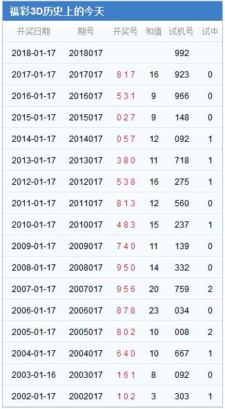 福彩3d第017期历史开奖号码汇总: