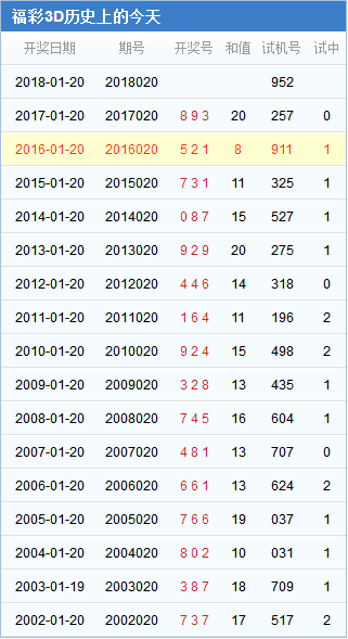 福彩3d第020期历史开奖号码汇总: