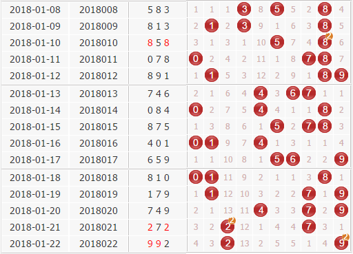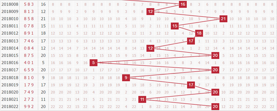 回顾:18022期开奖结果为:992;奇偶形态:奇奇偶;大小形态:大大小;和值:20;跨度7;