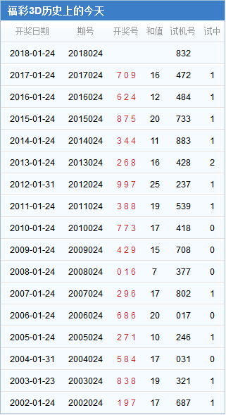 福彩3d第024期历史开奖号码汇总: