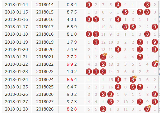 上期和值为18点,上期和值下降,下降的幅度为1,下降的幅度很小。从最近几期的和值走势来看,和值改变的之前的出号模式,出号的振动幅度变小,近期的和值一直小幅度波动,本期和值预计也不会有太大变化。本期推荐和值:11 13 16 17