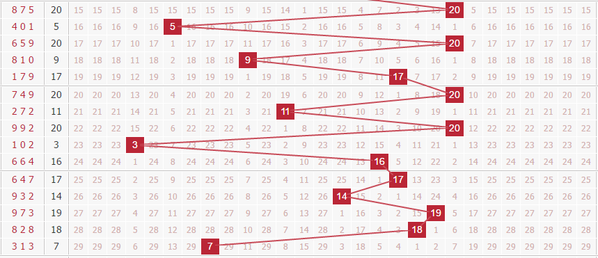 上期的和值开出了7,和值从第二区域进入到第一区域,上期和值点下降,下降的幅度为9,波动还比较大,根据近期和值的走势来看,最近和值出号走势缓和了几期,但是上期又重新开始大幅度振荡,本期预计和值变化幅度也会较大。推荐关注和值:10 14 17 18