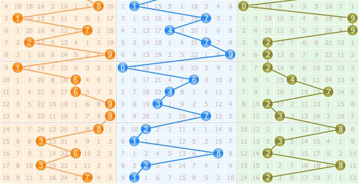 二、其次在十位上,开出了一个1号,近期十位上小数出号略强于大数开出,大数多是大振幅拉动一期表现,按照走势规律看,本期严防大数6号和9号拉动开出,