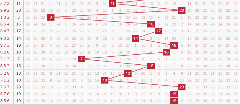 上期的和值开出了19,和值最近开出的波动大大减弱,和值变化的幅度没有之前那么大,现在和值正处于慢慢走小的趋势,大振幅开始慢慢淡出了,接下来要多关注小振幅的和值开出。本期预计和值变化幅度也会较小。推荐关注和值:12 13 15 18