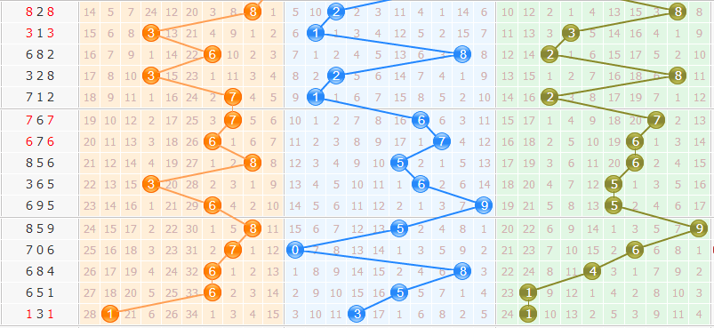 上期和值为5,上期和值继续下降,下降的幅度为7点,从近期的和值出号走势来看,最近的两期和值直线下降,上期下降至第一区和值,参考近期的和值变化,本期预计和值会在附近范围小幅变动。本期推荐和值:8 10 12 15 17