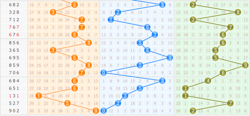 上期和值为11点,上期和值下降,下降的幅度为3,下降的幅度很小。从最近几期的和值走势来看,近期和值的变化振荡的幅度不大,近期主要在和值的中间部分出号,本期建议关注继续在这一范围内小幅变动。本期推荐和值:10 12 15 16