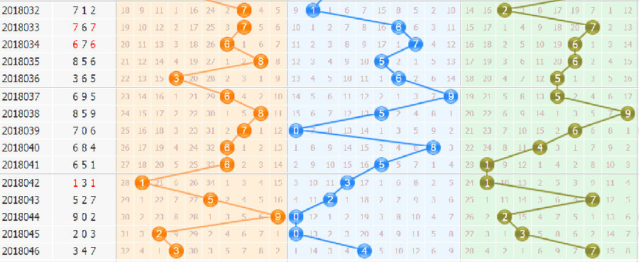 十位同上,近50期中,开出4到6、8、7、3有1次。首先排除1路的号,再排遗漏期数多的6、9,几率小的0、2,本期选择3、5、8。