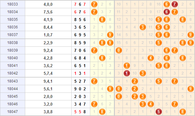 回顾上期的开奖结果为:558,大大大、奇奇偶的组三形态,和值是18,跨度为3,结合综合走势图看,近期斜连号高调复出,拉动出了一个从小数横跨到大数的斜连号,本期下一个落点继续关注,而且另外一组斜连号在本期也悄然形成,9号球可关注。
