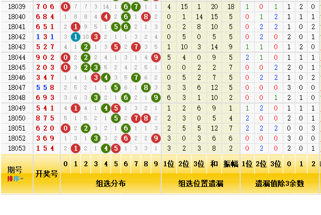 组选位置上的遗漏振幅是2,近10期分别是5-7-5-5-2-1-4-7-6-2,也就是从高到低,再到高,再到低依次,本期的话看好高,重点关注5-9之间的振幅遗漏。