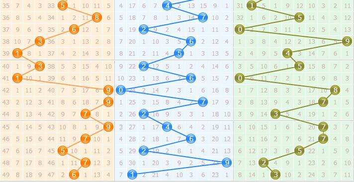 一、首先在百位上,上期开出了一个6号,百位上号码依旧占领着大数的高地上不肯下来,不过总体上正在以缓慢的速度向左移动,本期关注4、5,防6。