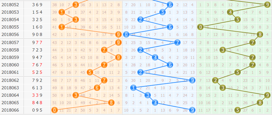 重复号:095的开出使得号码59走热,冷码0解冻。本期关注重复号码个数为4个,关注号码05重复。