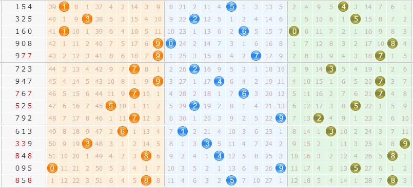 跨度分析:上期的跨度是3,是一个小跨度,近10期的跨度分别是5-5-1-3-7-5-6-4-9-3,可以看到一大半都是奇数,而且近期跨度都大于5,本期可以考虑跨度在5左右。