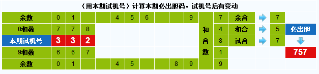 本期试机号胆码计算器推荐胆码:757