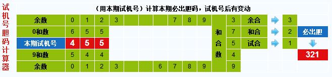 今日3d试机号的开奖号码是455,试机号胆码计算器开出看了312,从试机号跟试机号胆码计算器来看,1号球是重复号,近期的话重复号时开时不开,所以还是需要关注一下的;4号球是隔期号码,隔期号近期开出的还是比较频繁的,本期需要关注;2号球跟3号球的话近期都开始走冷,本期防一下;5号球隔了2期,近期的5号球平均隔期数在4左右,所以本期防一下就好了。