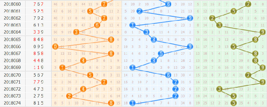 ③012路分析:为0路出0个,1路出1个,2路出2个;本期看好2路球出号,关注8码,综合分析看好,002 022路组合出号。