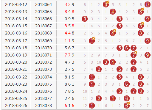 和尾分析:上一期和尾是开出了3,也是也是一个相邻的和尾,和尾振幅一旦走小,就是走小很多期,本期和尾肯定会集中在这一圈,不会拉开太大的距离。和尾重点推荐:2 3 4 5。