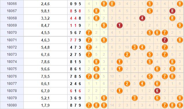 回顾上期的开奖结果为:879,大大大、偶奇奇的组六形态,和值是14,跨度为7,结合综合走势图看,近期号码开出偏右边集中,上期奖号中7号和8号持续关注,小数上转暖号码众多,建议盯防2和4。
