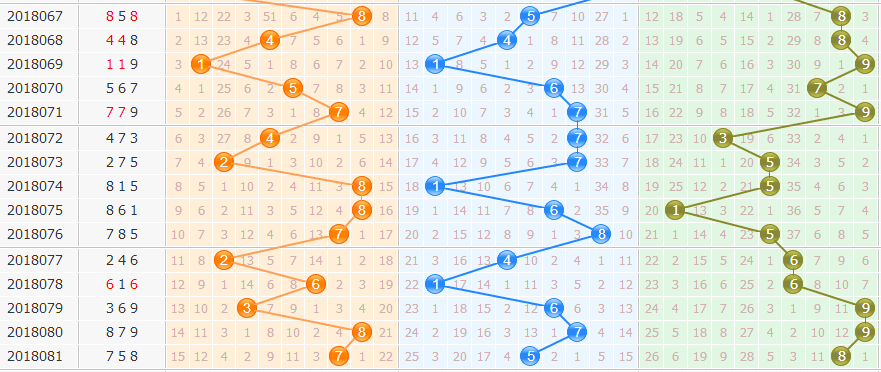 重复号:758的开出使得号码578走热。本期关注重复号码个数为1个,关注号码5重复。