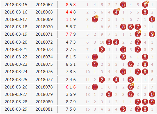 福彩3d第2018081期开奖结果:758;奇偶形态:奇奇偶;大小形态:大大大;和值:20;跨度3。苏会文结合近期福彩3d开奖走势对第18082期进行以下分析: