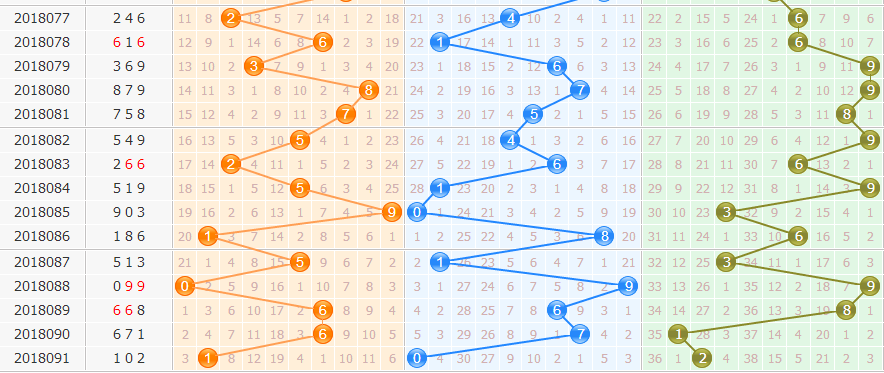 个位数是最难判断的,开出2到3有2次。首先排除2路的号,再排遗漏期数多的4、0,几率小的1、9,本期选择3、6、7。