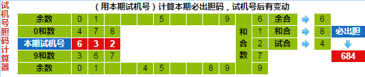 今日3d试机号的开奖号码是632,试机号胆码计算器开出了684,从试机号跟试机号胆码计算器来看,都有开出了6号球,而且都是偶数占优,从近期的走势来看,6号球是近期的大热并且之前还开出过组三形式,是一个隔期号,所以本期的6开出的几率非常大,所以需要关注;另外的3号球是上一期的一个邻码,近期邻码一枝独秀,所以看好3号出;4号球已经遗漏了9期未开出,上期连着爆出3个小号,所以本期也需要关注。