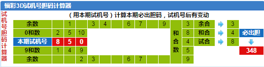 3d试机号胆码计算器:今晚必出胆码348