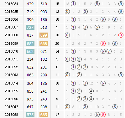 回顾:18098期开奖结果为:665;奇偶形态:偶偶奇;大小形态:大大大;和值:17;跨度1;