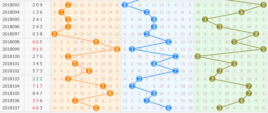 上期开出663,和值15,1奇2偶,1小2大,百位6遗漏8期、十位6遗漏8期,个位3遗漏4期,从整个出号来说,总遗漏值达到20期,说明有较热的号出现。而除3余数形态000路。
