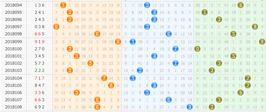 上期开出692,和值17,1奇2偶,1小2大,百位6重复、十位9遗漏19期,个位2遗漏4期,从整个出号来说,总遗漏值达到23期,说明有较热的号出现。而除3余数形态002路。
