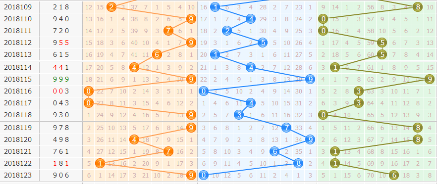 重复号:906的开出使得号码09走热,号码6由冷转温。本期关注重复号码个数为2个,关注号码69重复。