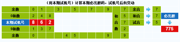 本期试机号胆码计算器推荐胆码:775