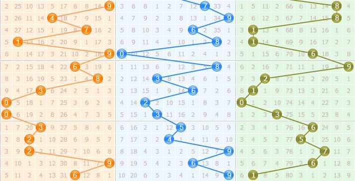 和值分析:上期的和值为16点,按照目前和值走向看,近期和值一路攀升,上期合适有略微回落,总体上和值还是在第二区间和第三区间移动的,本期推荐看好和值13和23。