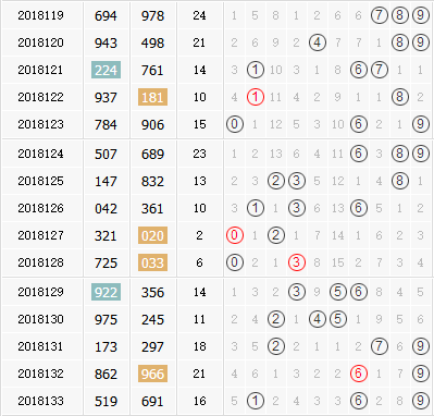 跨度:上期的跨度是8,开出遗漏期较长的大跨,近十期的跨度振幅为6-3-1-3-1-0-0-4-4-5,小振幅总共开出8期,所以前十期里跨度在小振幅上的发展十分强势,近几期跨度振幅整体走大,本期看好跨度振幅回落。本期跨度综合推荐:2 3 5 7 8