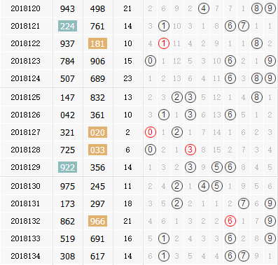 上期的和值开出了14,前十五期里的和值走势为21-14-10-15-23-13-10-2-6-14-11-18-21-16-14,总体上是大和值比较有优势,但近期和值几乎一直在下降,上期和值继续在小幅度下降,参照以往和值14开出的情况,和值预计会继续回落,本期需防和值降到一区,主看二区和值。本期推荐关注和值:8 9 11 13 15 18 19