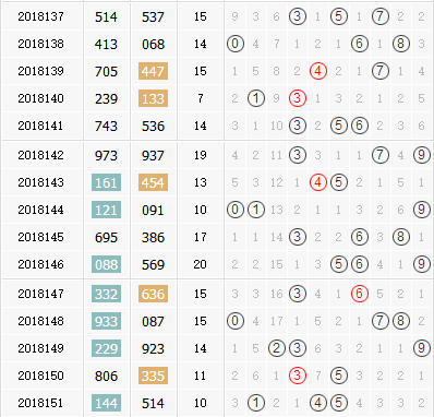 和值:上期和值为10,和值继续下降,重新开回一个偶数和值,前五期和值奇偶走势为奇-奇-偶-奇-偶,奇数和值当前总共开出3期,处于稳定发挥的状态,偶数和值近十期的连开能力比较差,所以本期主看奇数和值重新出现,防偶数和值连开。本期看好和值:7 11 13 14 15 16 19