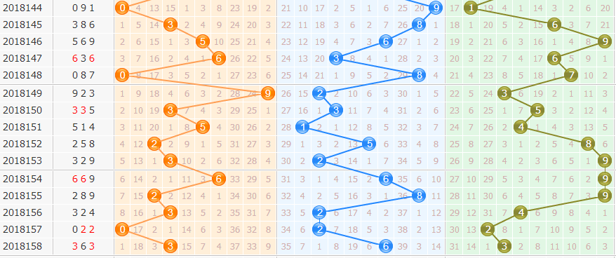 重复号:363的开出使得号码36走热。本期关注重复号码个数为2个,关注号码36重复。