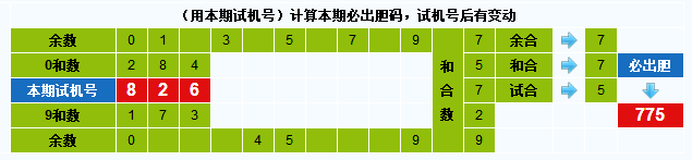本期试机号胆码计算器推荐胆码:775