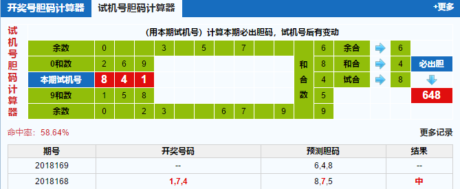 福彩3d第2018169期试机号:841