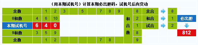 本期胆码计算器与试机号没有重合的号码,。结合近期试机号命中开奖号走势图来看,试机号在近几期的命中率十分低,所以我们大可以趁机将本期试机号作为杀号标准。排除了本期试机号以后来看胆码计算器的号码,其中1号球是本期重复号,有着较高的命中概率,本期建议重防1号球。