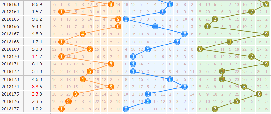 福彩3D第2018177期开奖号102,跨度开出2位点,重码开出2,全顺组合露面,和值回落至3点