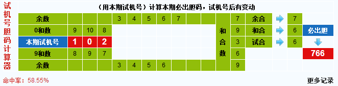 本期3d试机号胆码计算器给出结果:766