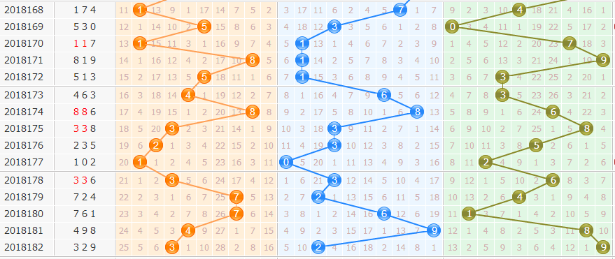 福彩3D第2018182期开奖号329,跨度开出7位点,重码个数为1,邻码开出39,和值回落至14点,