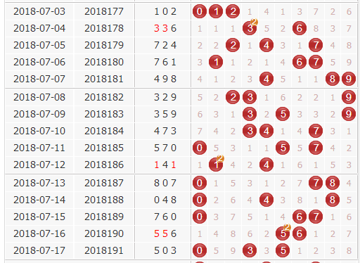 [十位分析]:十位上振幅移动频率高,小数出号几率大,看好0和4;