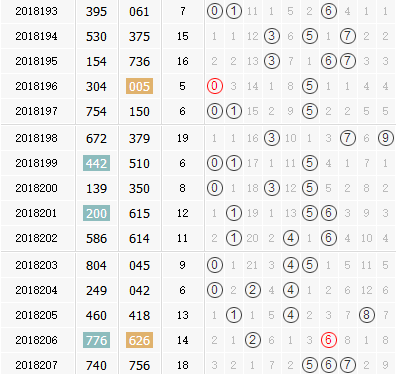 福彩3d第2018207期开奖结果:756;奇偶形态:奇奇偶;大小形态:大大大;和值:18;跨度2。苏会文结合近期福彩3d开奖走势对第18208期进行以下分析: