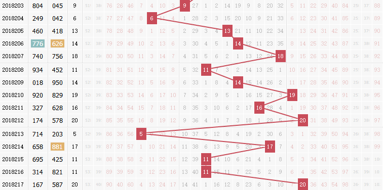 上期的和值开出了20,前十五期里的和值走势为9-6-13-14-18-11-14-19-16-20-5-17-11-11-20,和值近十五期里主要集中在二区,但近十期里在三区开出的频率明显增多,上期和值以大振幅再次开出在三区,鉴于三区和值的连开能力不强,本期建议看和值重新在二区里开出,防一区和值。本期推荐关注和值:7 10 11 13 15 16 18