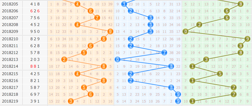 十位大、偶、温、2路是本期十位数上的首选,从上面的条件中我们可以得出首选8,而次一级关注5这个数。